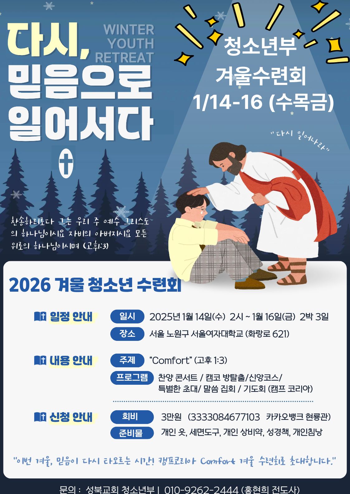 | 2026년 청소년부 겨울 수련회 1월 14-16(수목금) | 홍현희 | 2026-01-09 | |||