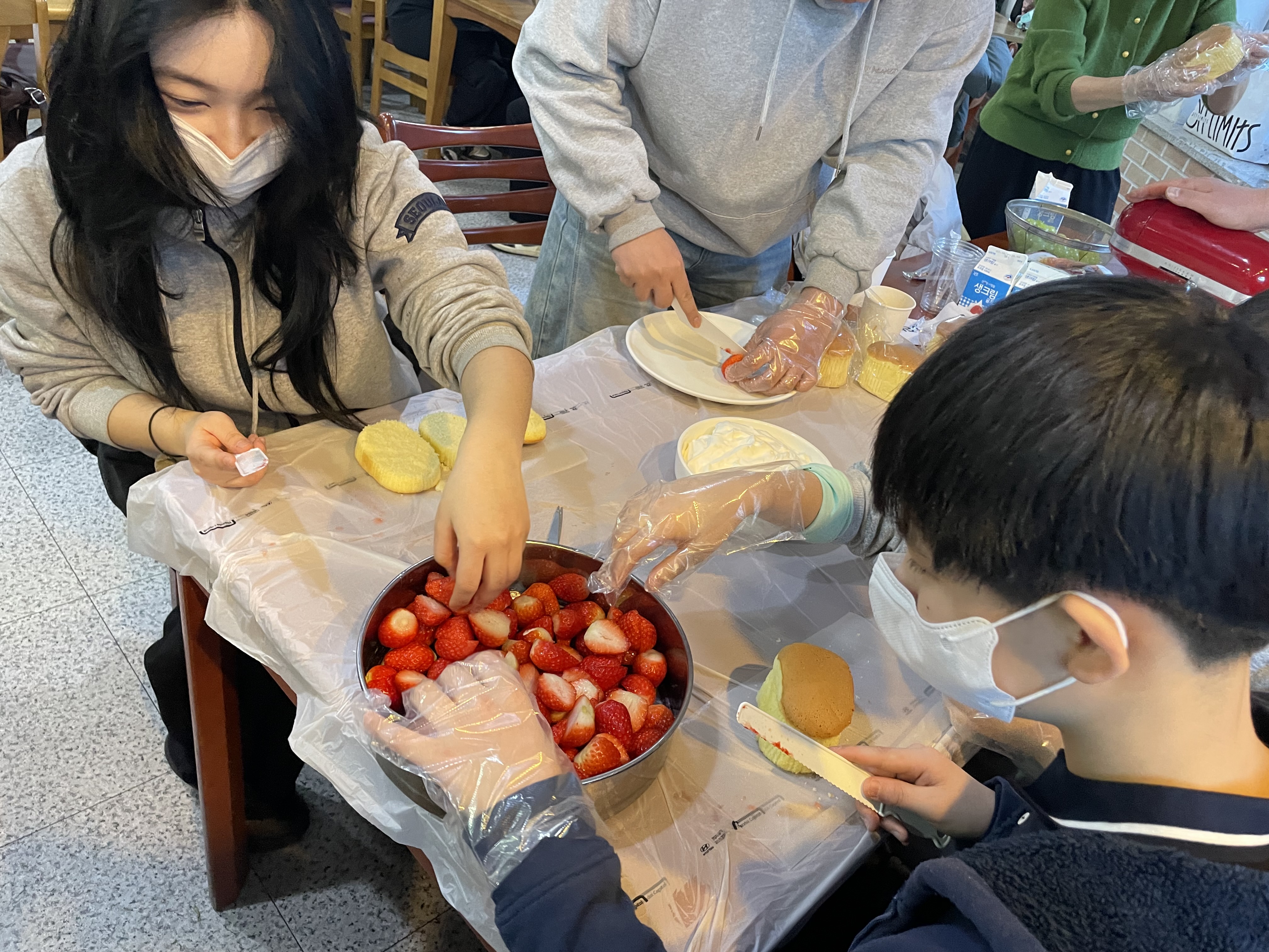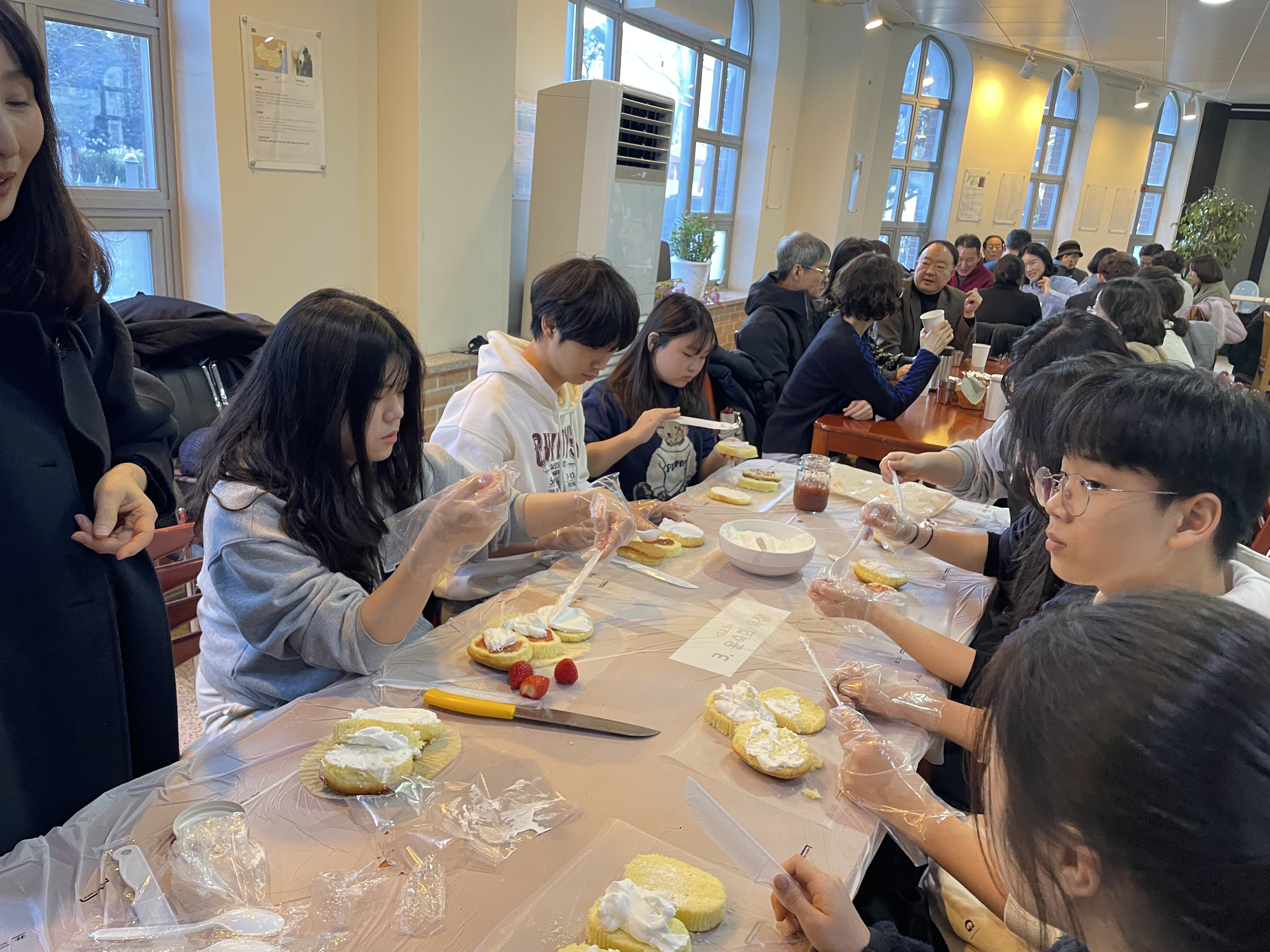 교회 63주년 창립 기념 주일을 맞이하여 청소년부 친구들이 함께 연합 예배를 드리고 케이크 만들기 활동을 하였습니다~!