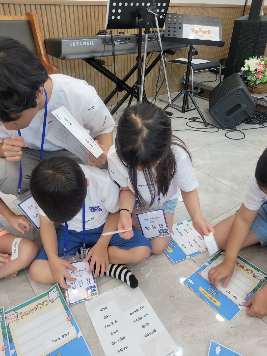 4. 공과 및 연계활동 반 별로 모여 공과시간을 가진 뒤 함께 모여 공과시간에 배운 내용을 바탕으로 연계활동을 진행하였습니다. 1과 - 교재학습