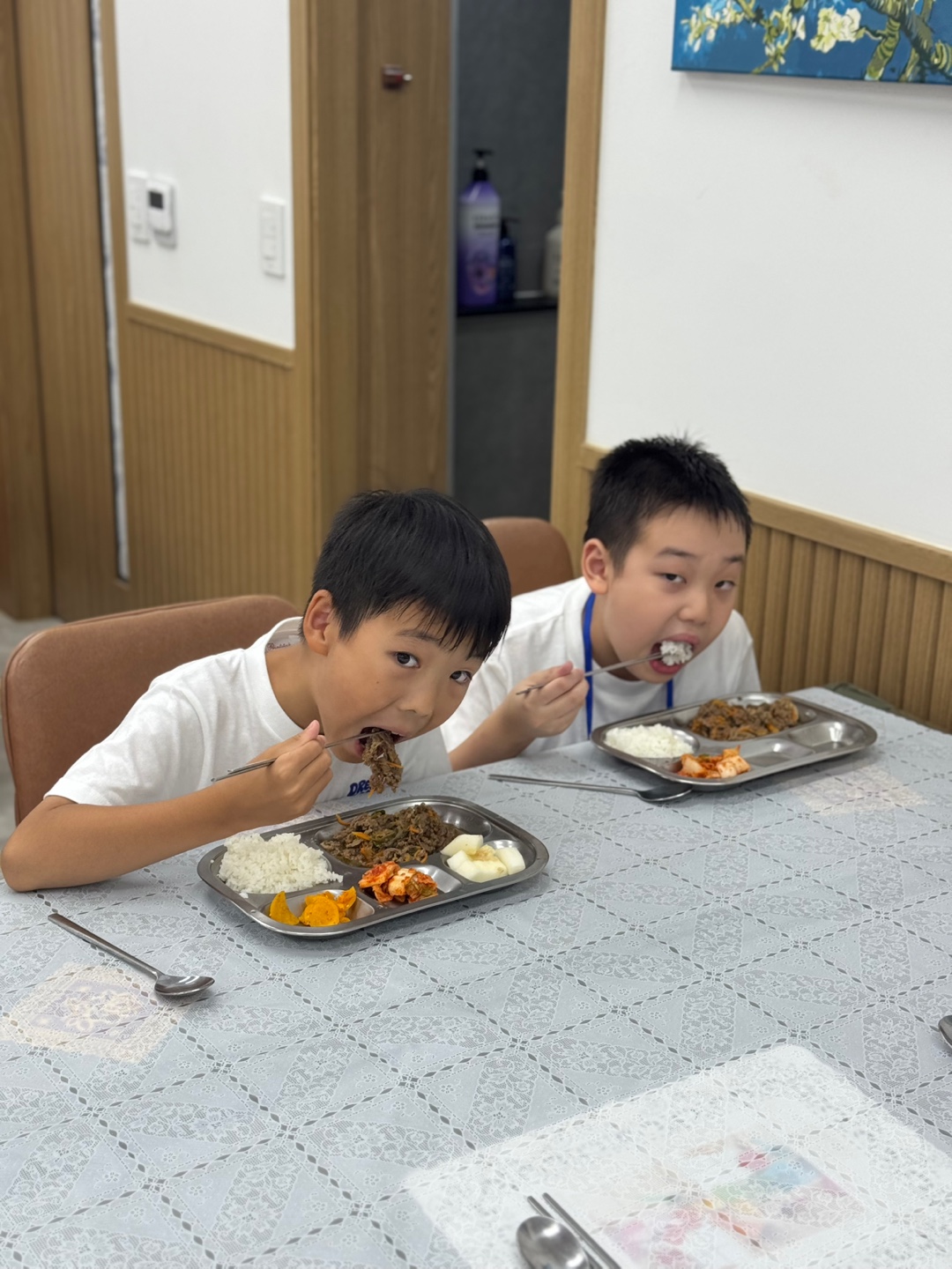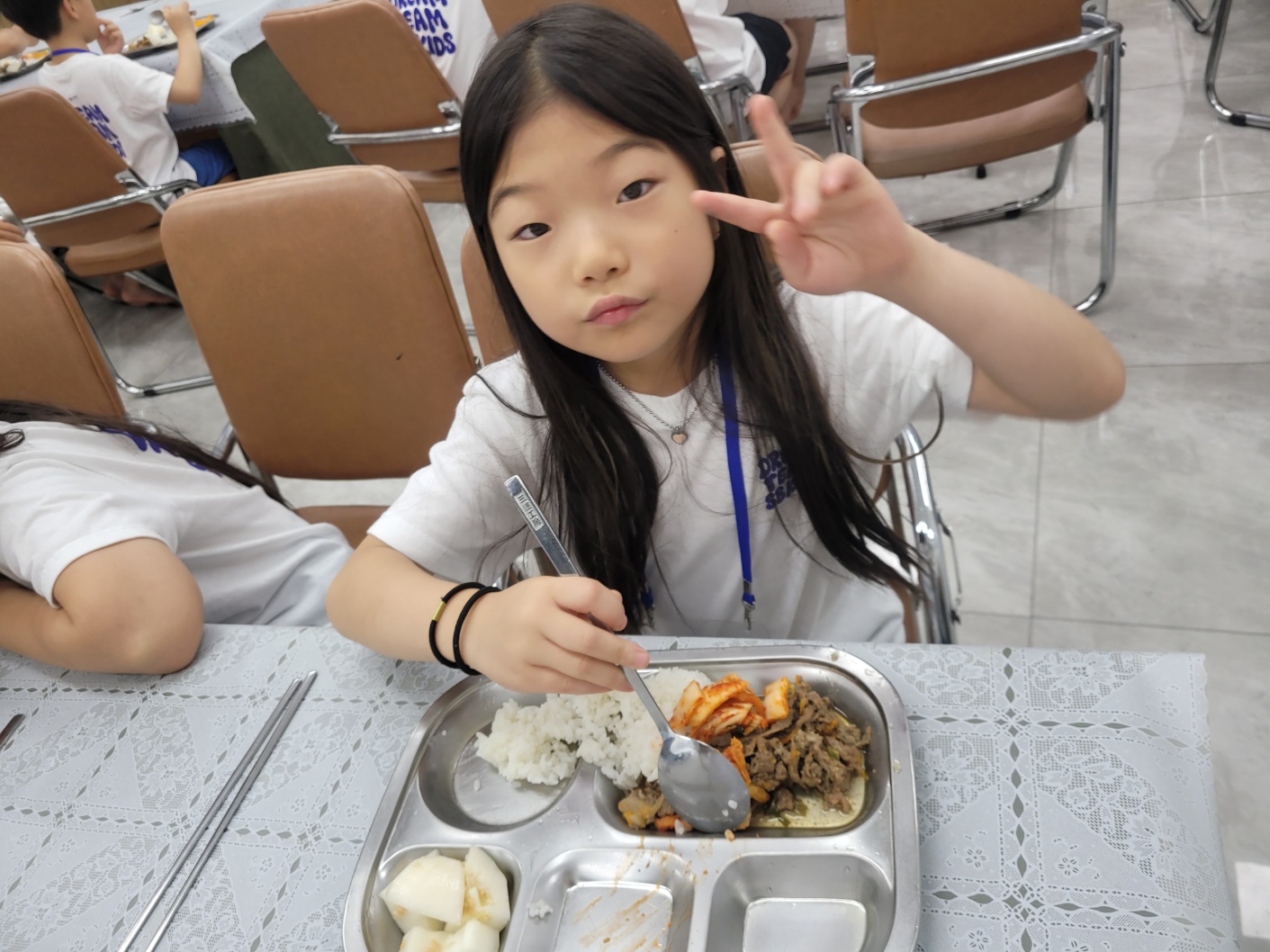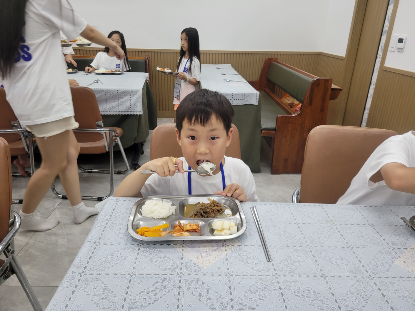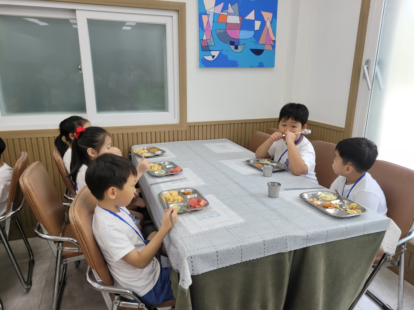 7. 저녁식사 저녁에 마음껏 뛰어놀기 위해, 아이들이 맛있는 저녁 식사를 든든하게 먹었습니다.