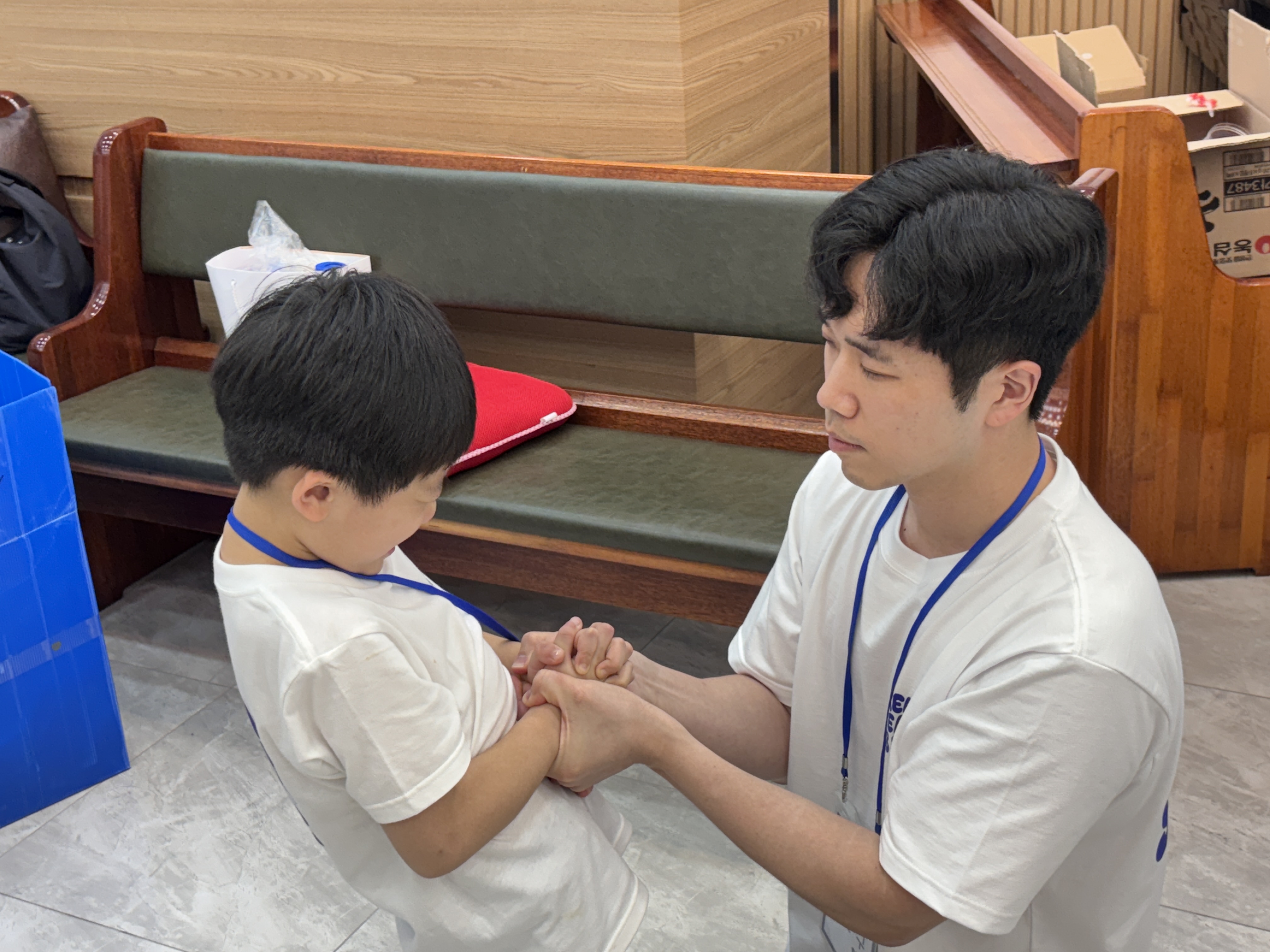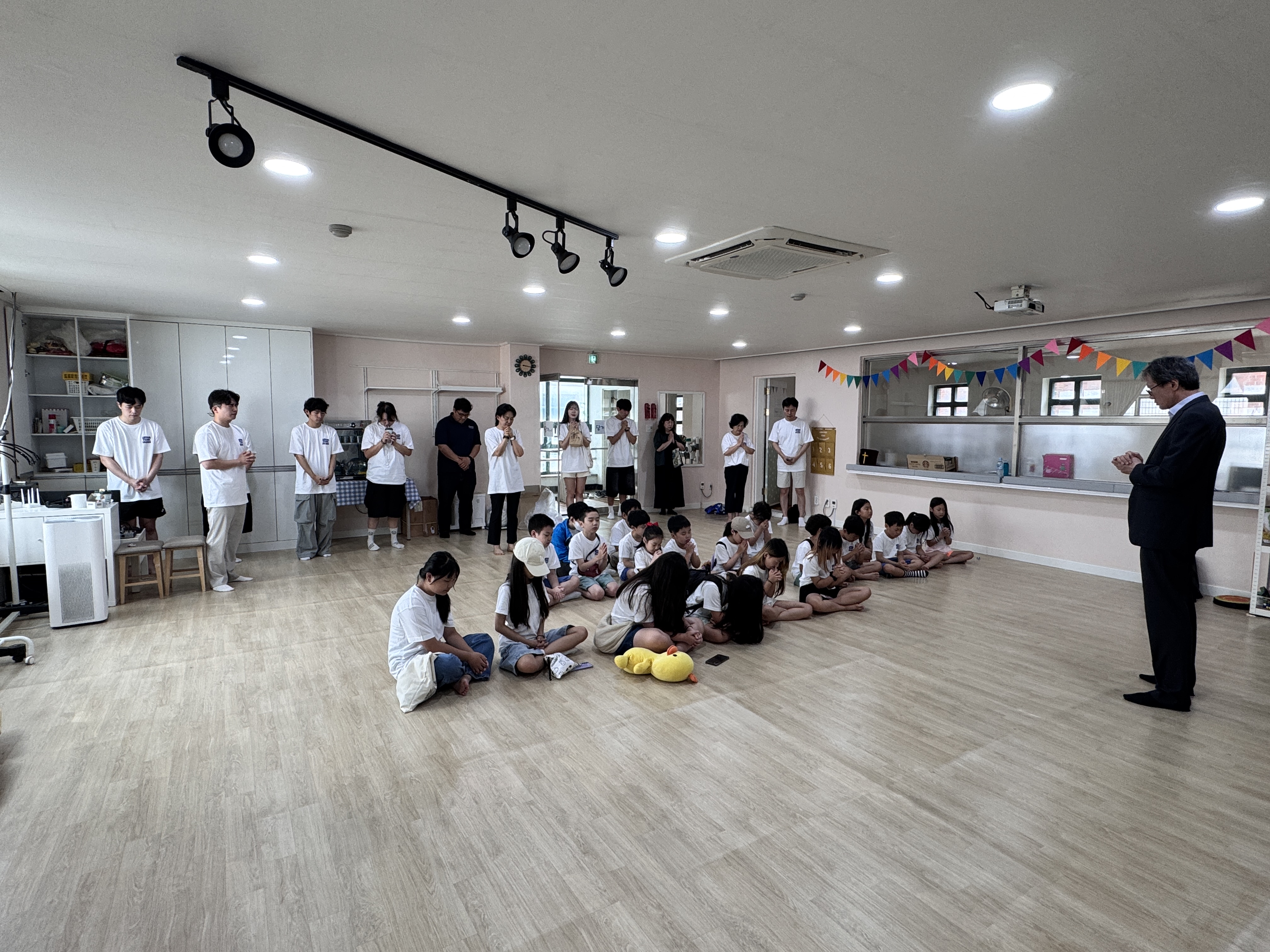 <1일 차> 1. 교회 출발 육순종 담임목사님의 축복기도로 성경학교를 시작했습니다.