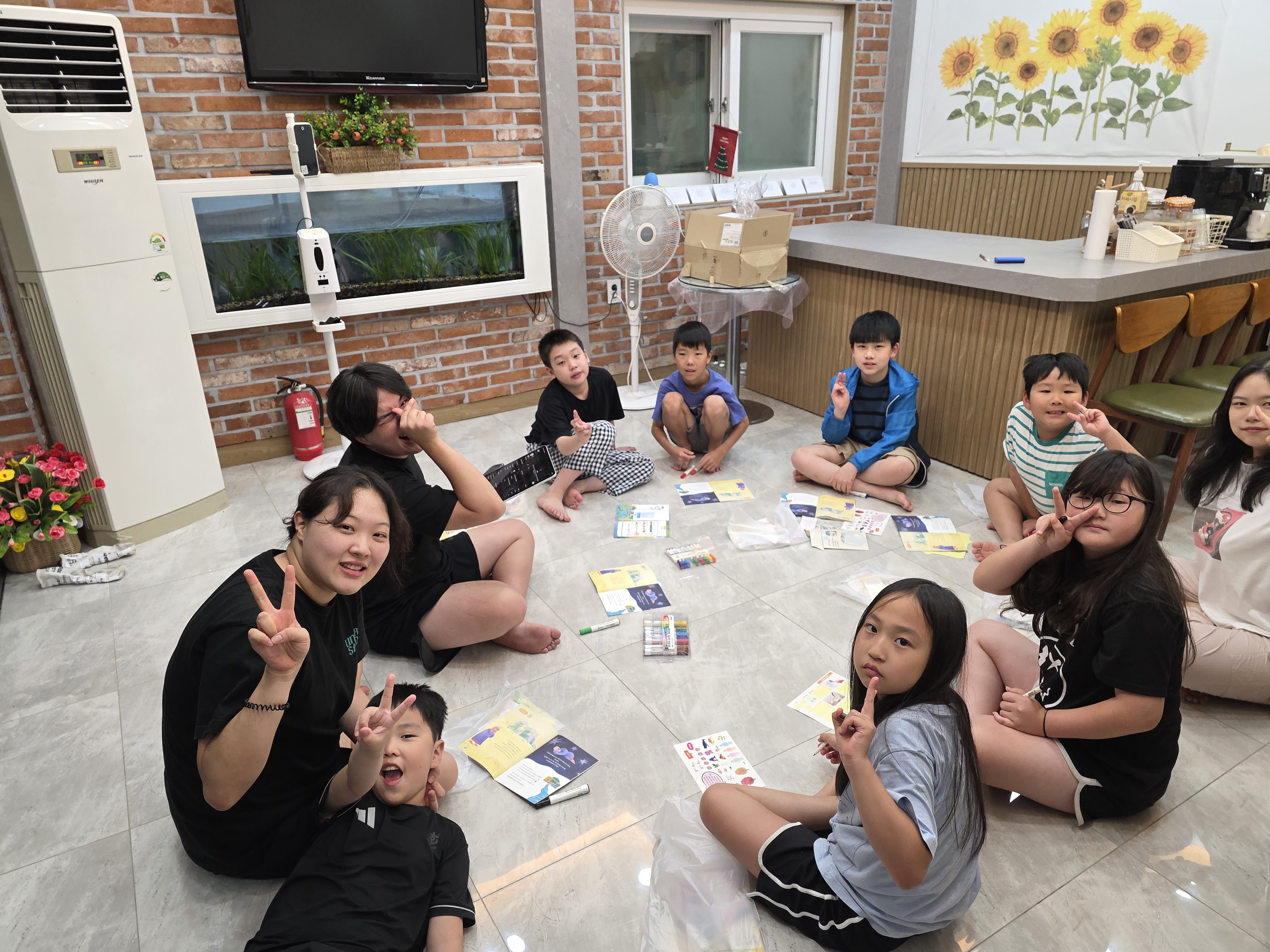 아이들과 함께 인사를 나누고, 준서 선생님의 건강한 군 생활과 무사 전역을 위해