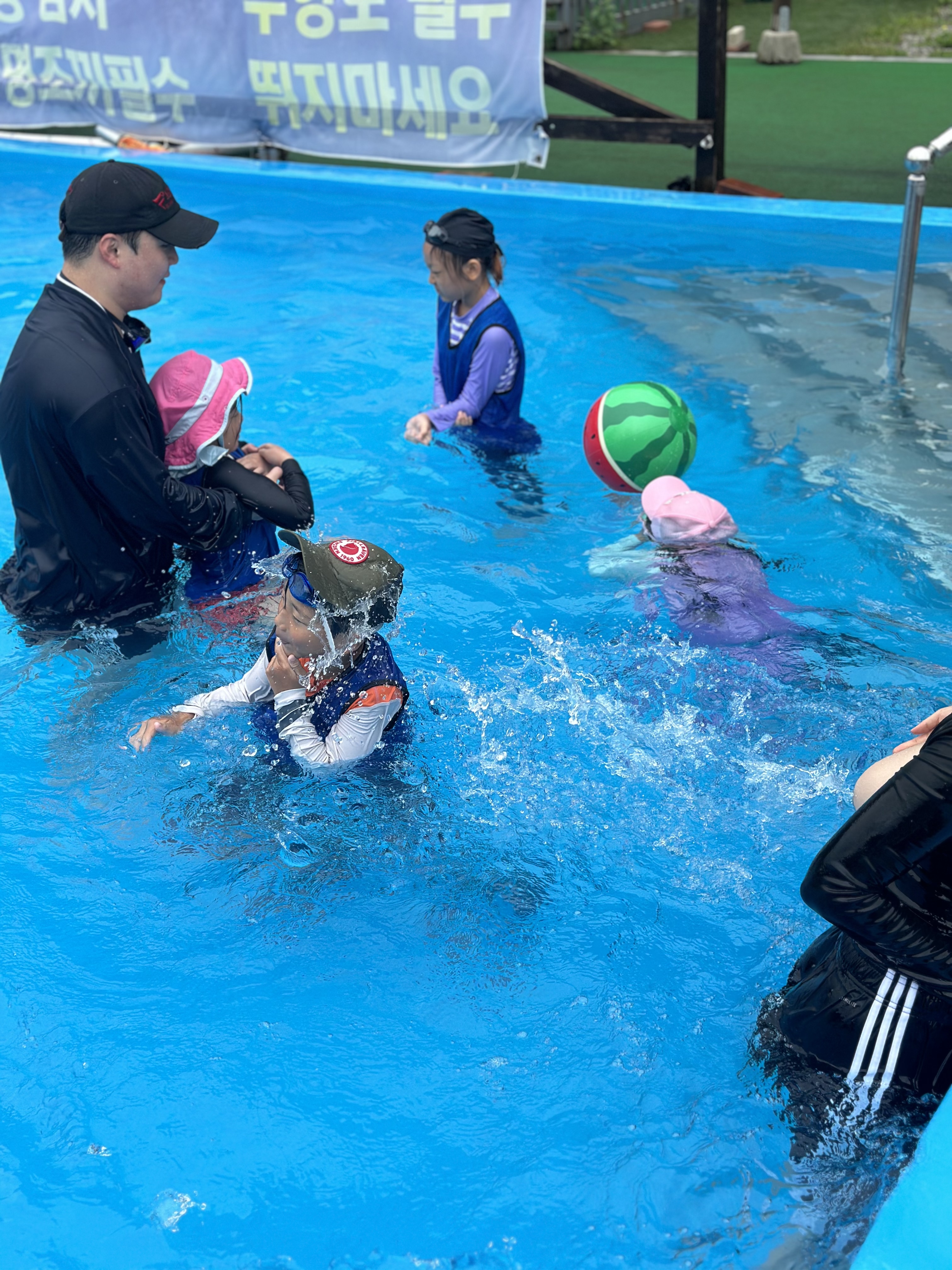 2. 물놀이 여름하면 물놀이! 여름성경학교의 하이라이트 물놀이! 수영장 개장시간에 맞춰 들어가서 폐장시간까지 아이들이 만족할 만큼 신나게 물놀이를 하였습니다.