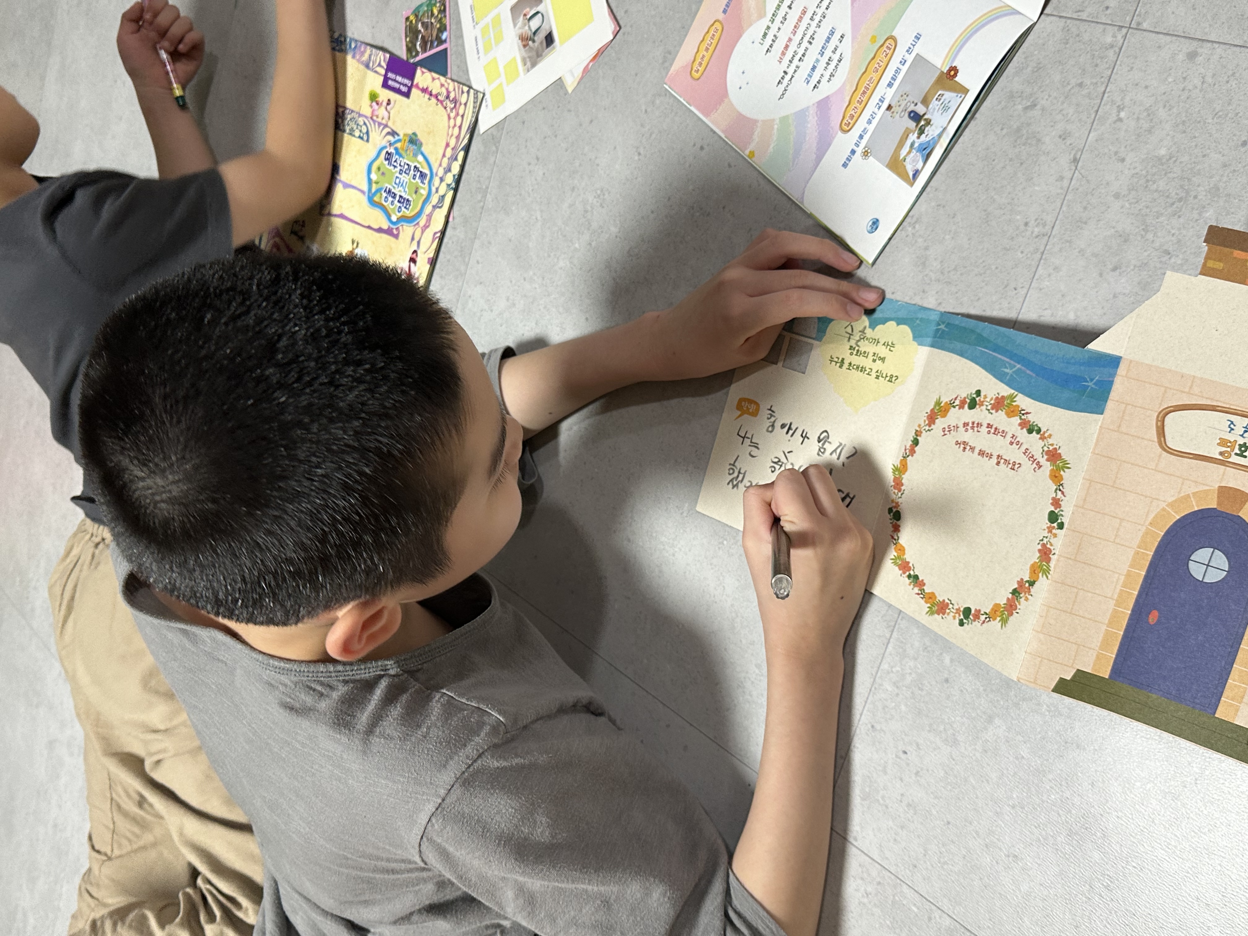 아이들은 준비된 기도문을 함께 따라 읽으며 하나님께 믿음의 기도, 소망의 기도, 사랑의 기도를 드렸고, 그 후에는 선생님들과 함께 자신이 가장 기도하고 싶은 한 가지 마음을 선택해 개인적으로 기도하는 시간을 가졌습니다.
