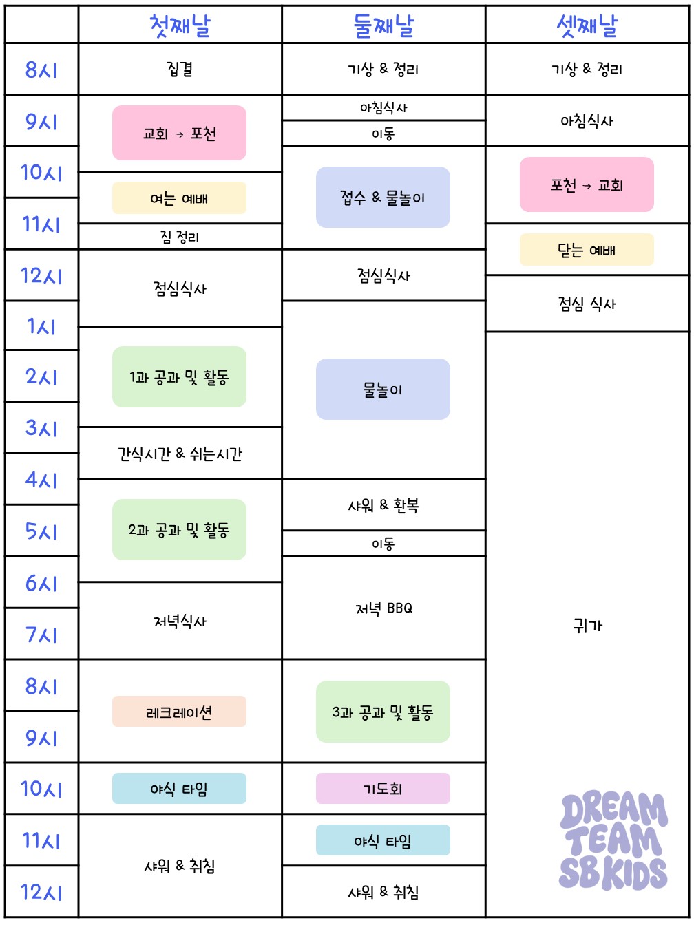 안녕하세요~ 성북교회 드림팀 어린이부 입니다! 지난 08월 8일(금)부터 10일(일)까지 2박3일동안 아이들과 함께 여름성경학교를 은혜롭게 마쳤습니다. 기도와 응원으로 함께해 주신 성도님들의 사랑 덕분에 아이들이 안전하게 지내며 즐겁고 풍성한 시간을 보낼 수 있었습니다. 모든 관심과 동행에 진심으로 감사드립니다. 이번 여름성경학교에서 아이들이 보여준 밝은 얼굴과 현장의 따뜻한 순간들을 사진으로 나누고자 합니다. 함께 보시며 기쁨을 나눠주세요~!