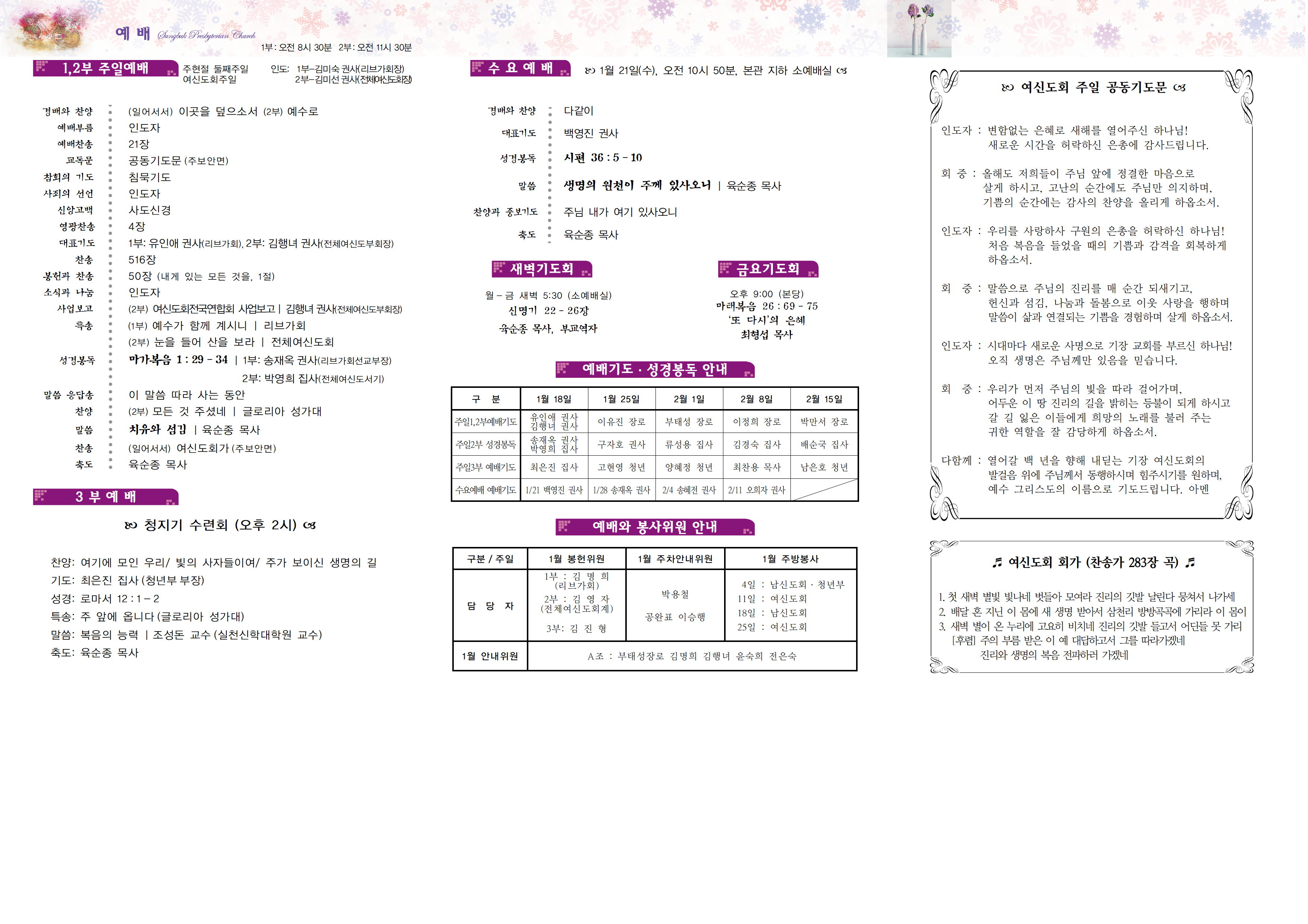 ∙여신도회주일/ 오늘은 총회가 정한 여신도회주일로 지킵니다.