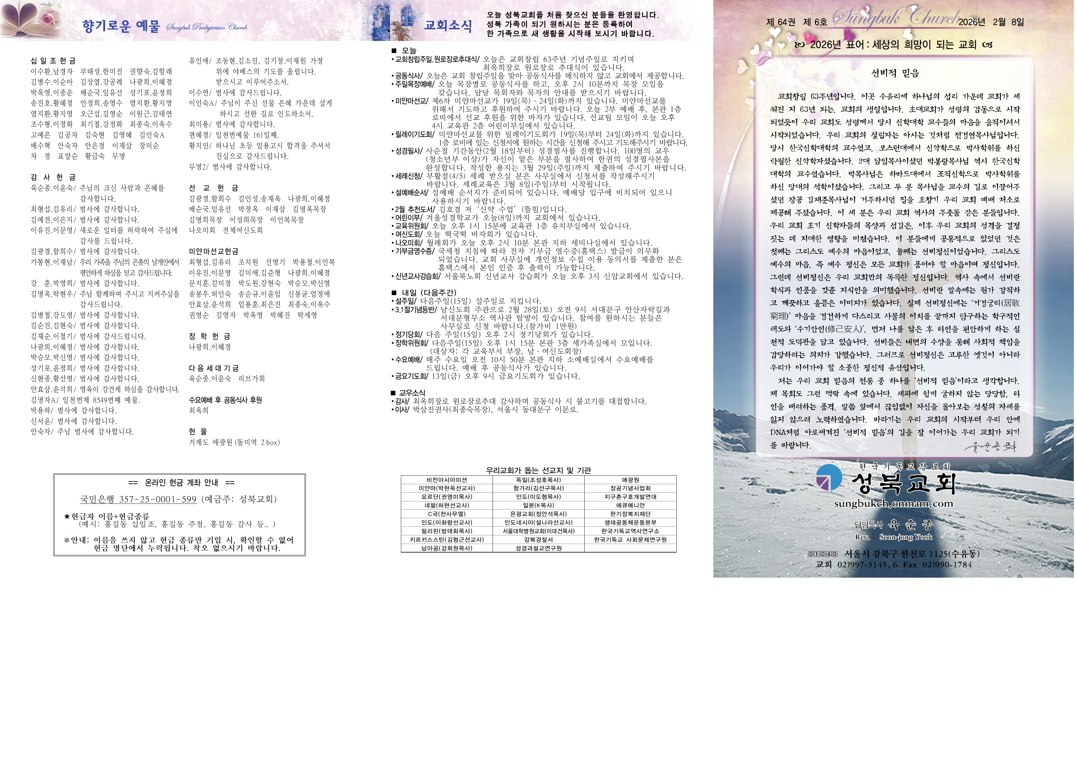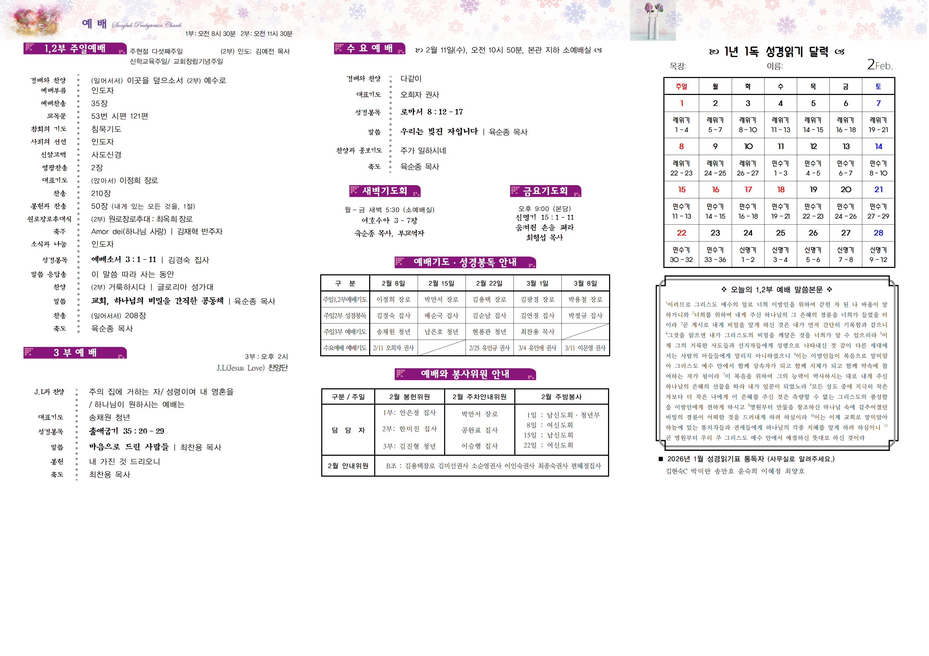 ∙설예배순서/ 설예배 순서지가 준비되어 있습니다.